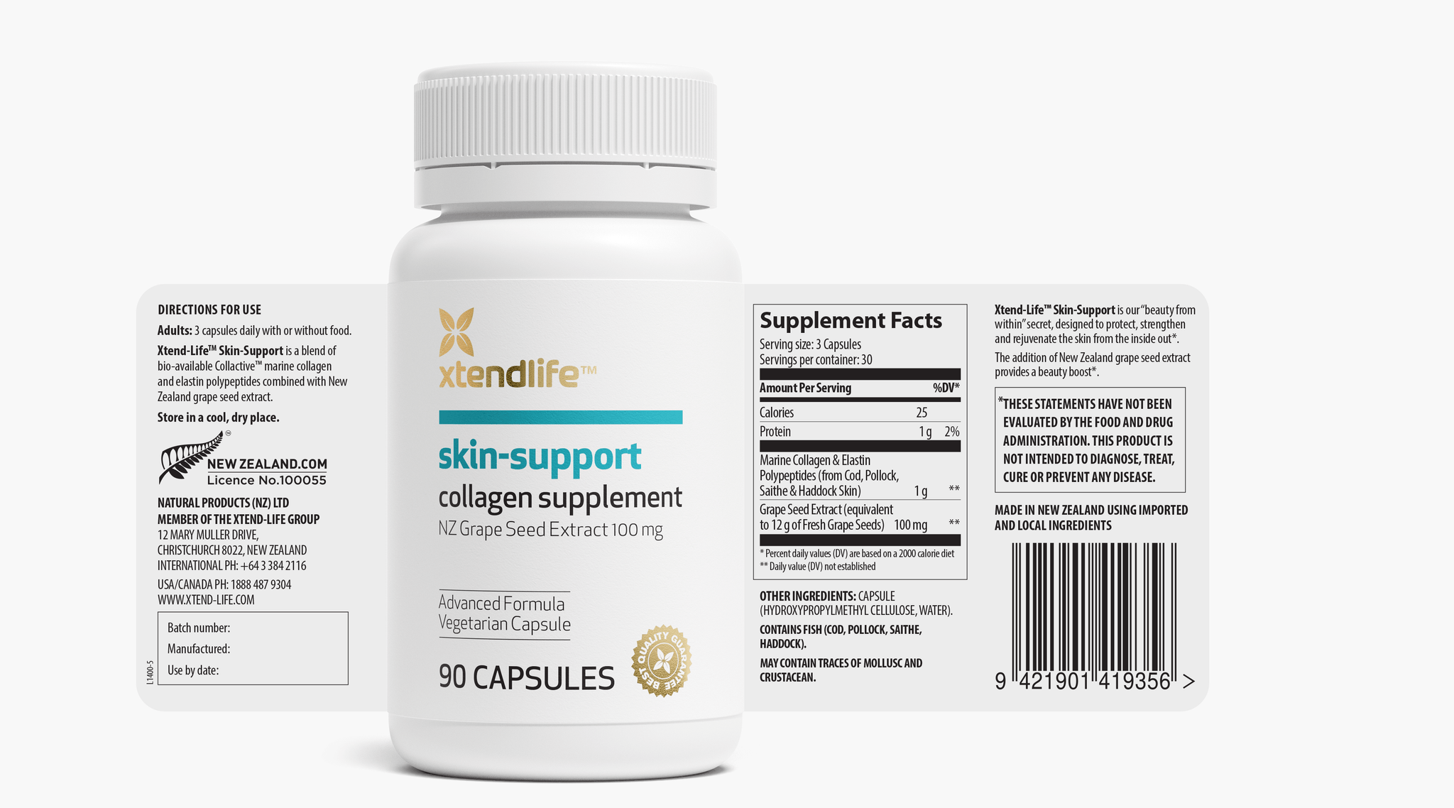 Skin-Support has been specially formulated for individuals wanting to focus solely on the skin and contains two potent ingredients; Collactive™ Marine Collagen and Oxi-fend Grape Seed Extract.